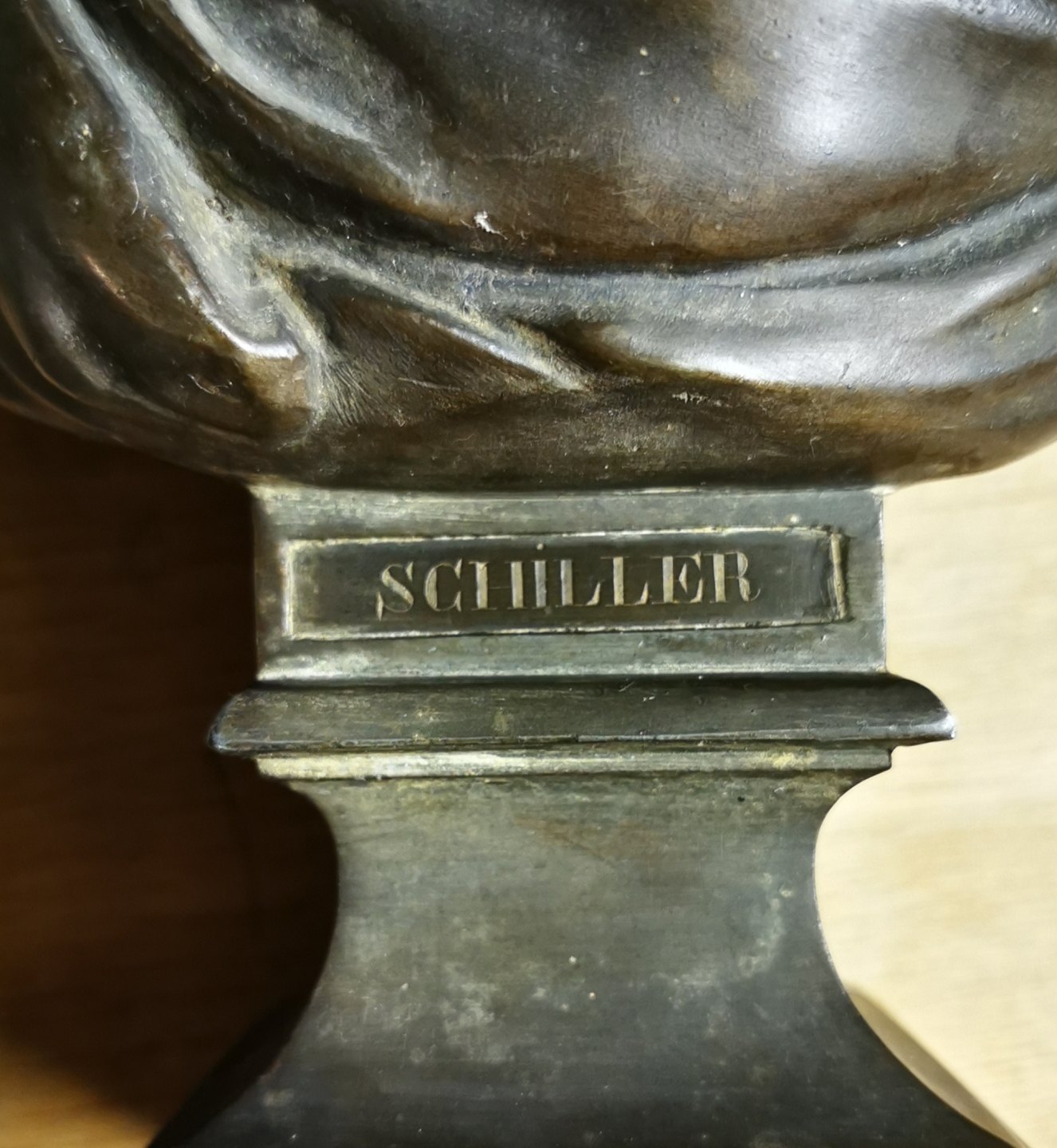 Portræt buste af Friedrich Schiller i metal. Bronce patineret. I god stand uden skader eller reparationer. Ubekendt kunstner og støbeværkstes. Formodes fremstillet i begyndelsen af 20. Århundrede. Busten er 32 cm høj og 21,5 cm bred. Foden måler 10 x 10 cm. FRIEDRICH Schiller var udover historiker og digter også filosof og dramatiker. Han levede fra 1759 til 1805.