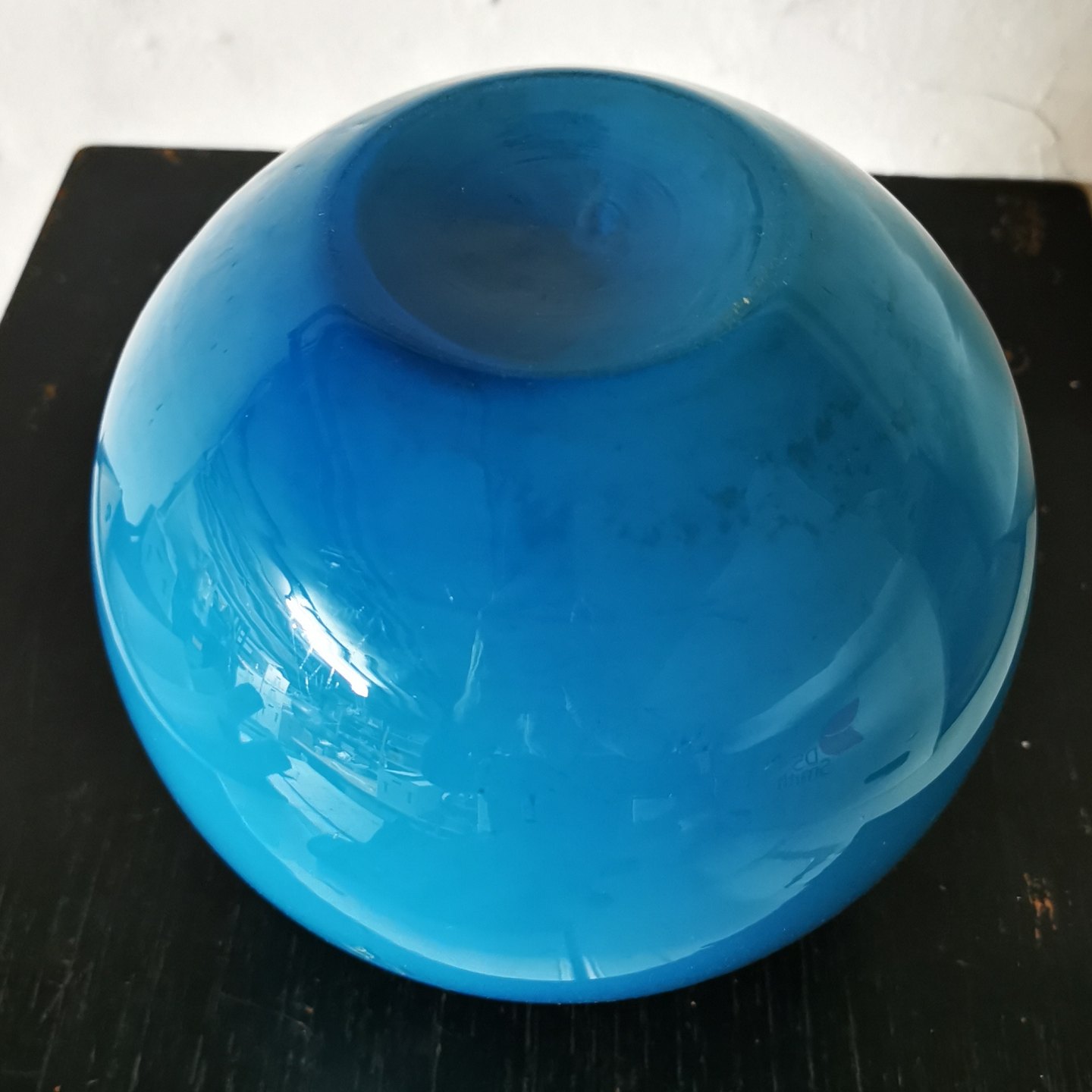 STOR MODEL: Kugle rund blå/hvid Carnaby glas vase fra Kastrup/Holmegaard Glasværk. H. 20 cm. I perfekt stand uden skader eller reparationer. Diameter diameter på 18,5 cm