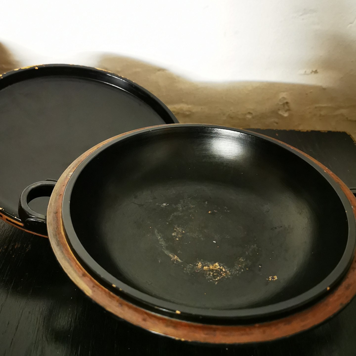 Lauritz Hjorth: Ceramic Lekanis bowl on foot with handle and matching lid, which is decorated with a group of figures around the lid. Appears to be in good condition. Copy from the Bornholm factory from around 1900, where other Danish ceramic factories also copied models based on southern European models from, among others, Greece and southern Italy, which were commonly produced around the 4th century BC. This bowl is factory marked on the bottom with L. Hjorth. Measurements: H. 13 cm. From ear to ear 24 cm. The diameter of the bowl is 20 cm.
