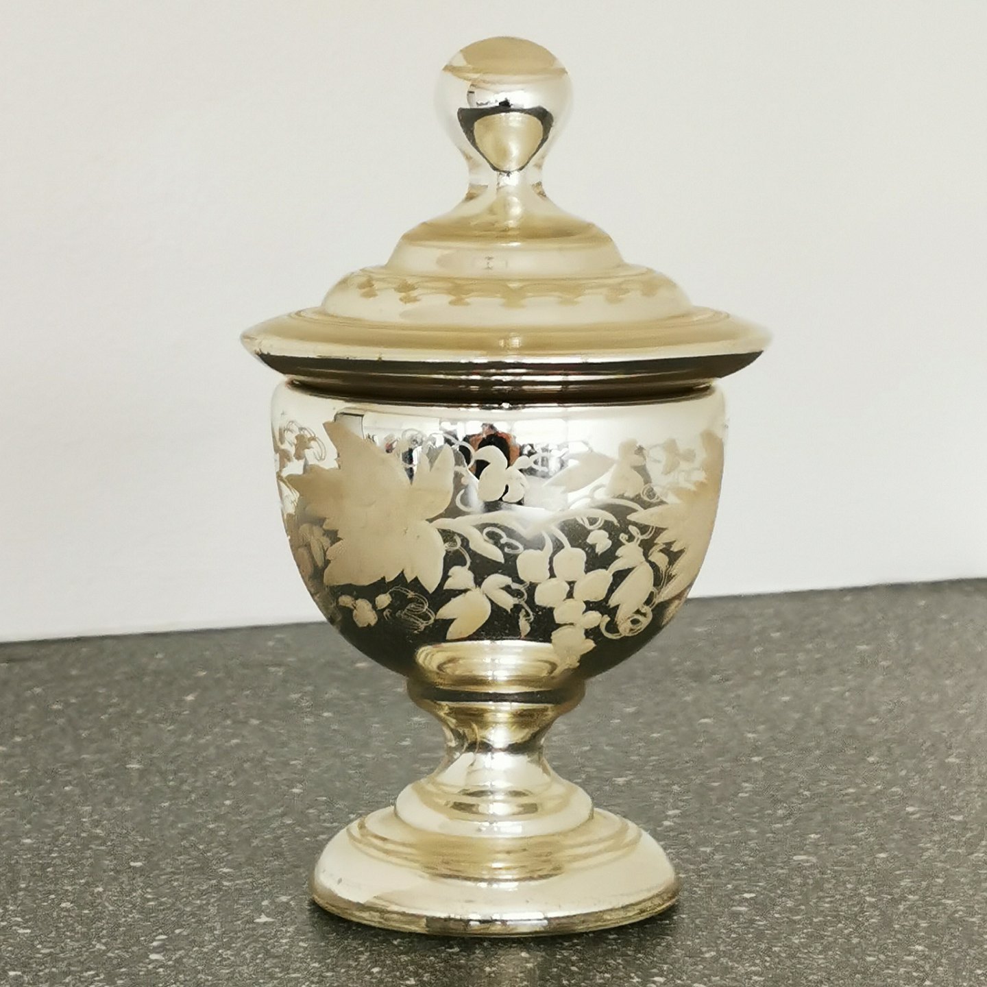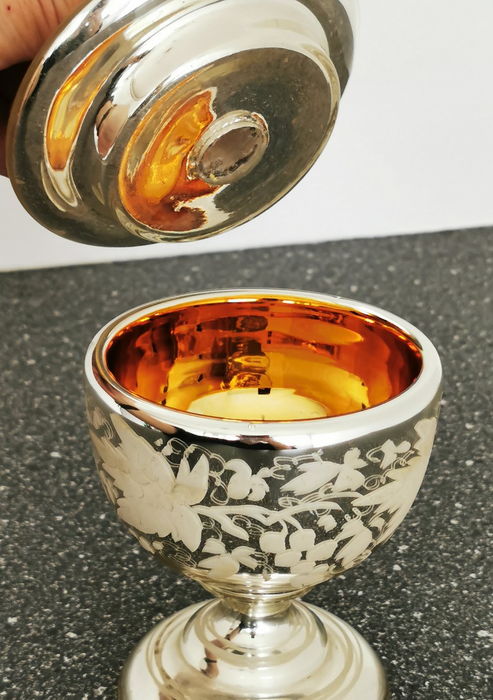 Lågskål i fattigmandssølv glas i Art Nouveaustil . Fremstillet omkring 1900 i Frankrig. I god stand uden skader eller reparationer. Interiør i guld. MÅL: H. 17,5 cm