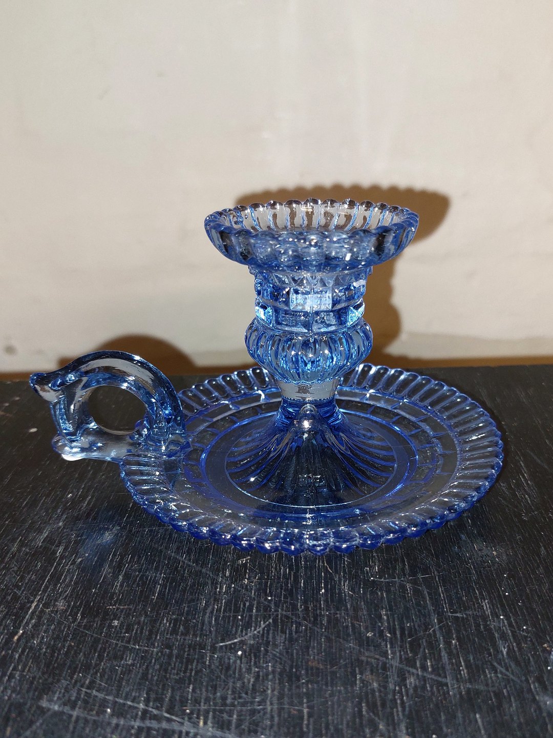 Kammerstage I blåt glas fra Fyens Glasværk. Fremstår I perfekt stand. Ingen skader eller reparationer.