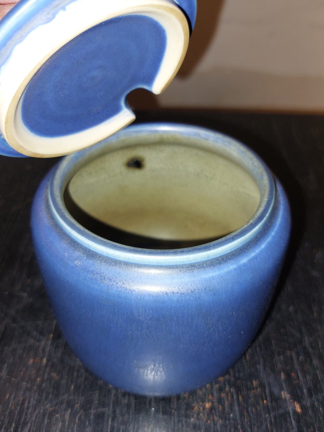 Blå lågskål i keramik fra Palshus. Designet af fabrikkens grundlægger Per Linnemann-Schmidt. I god stand uden skader eller reparationer. 1. sortering. Fabriksmærke, kunstnersignatur PL-S samt modelnummer 1194/1 indridset på bunden. H. 9.5 cm