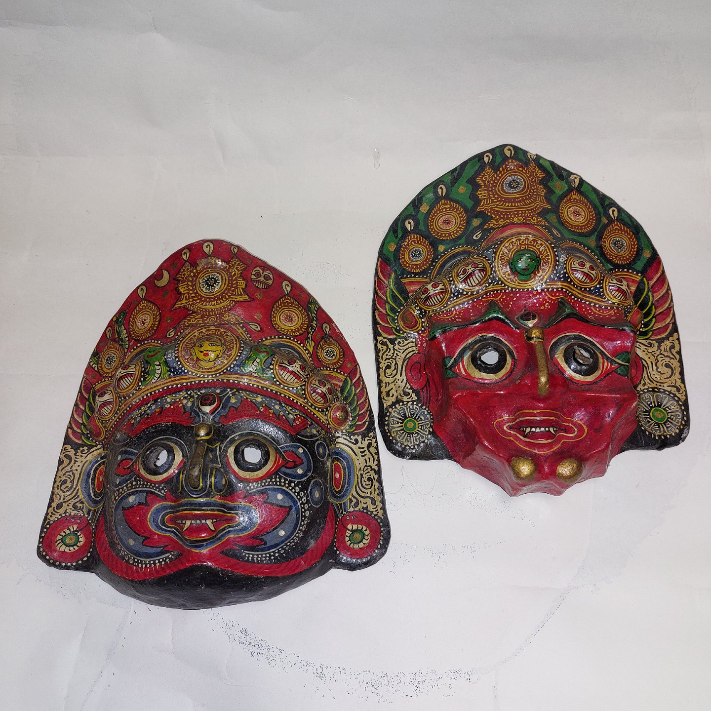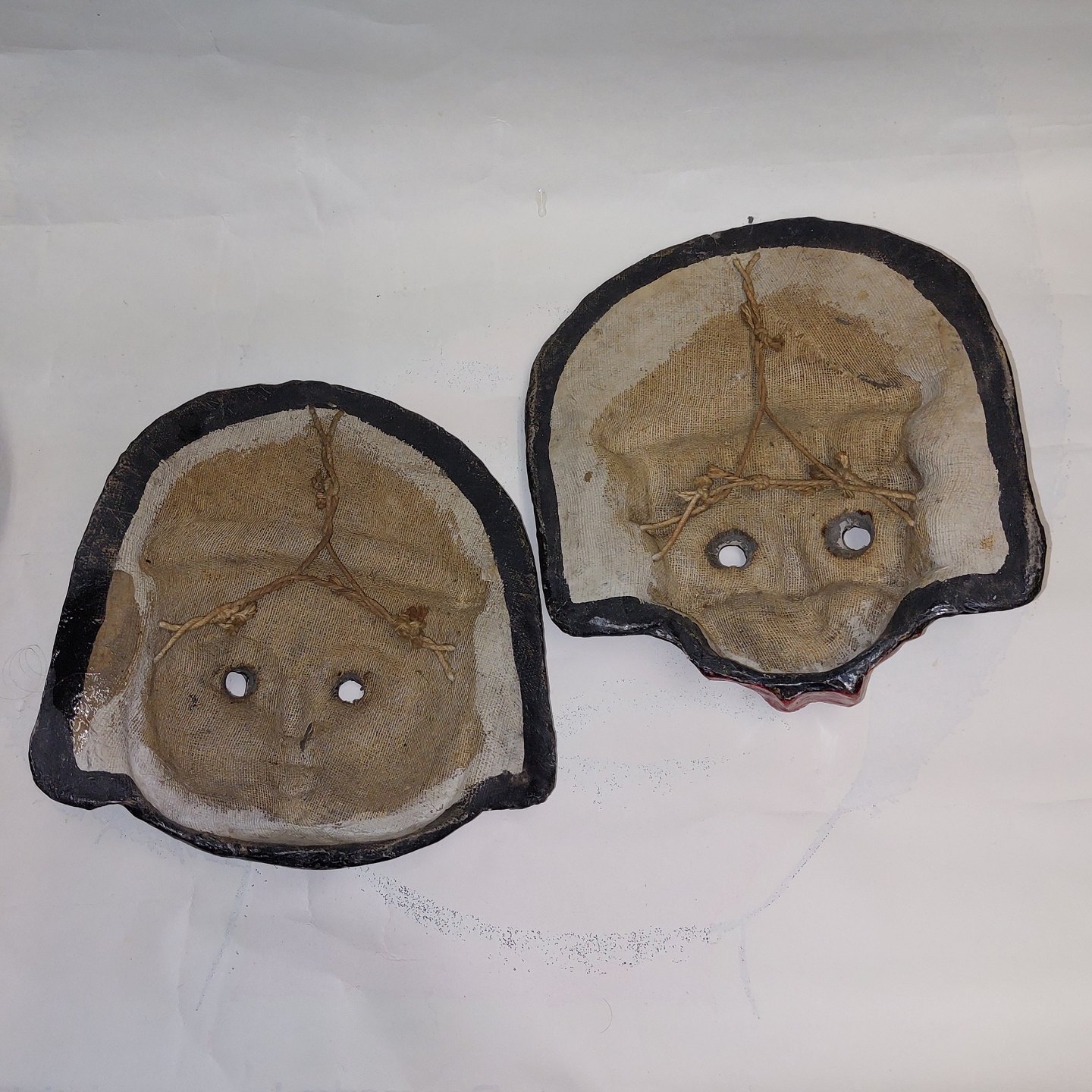 Par dekorative bemalede masker I keramik. Begge fremstår I god stand uden skader eller reparationer. Fremstillet I Indien i midten af det 20. århundrede. H. 21 cm