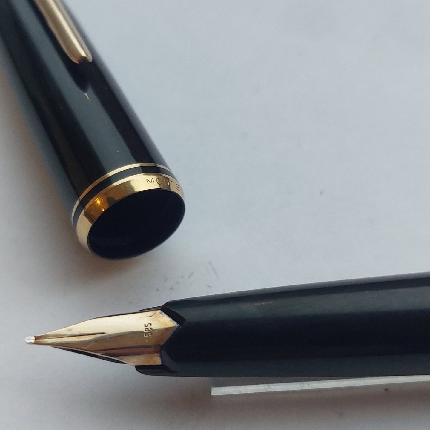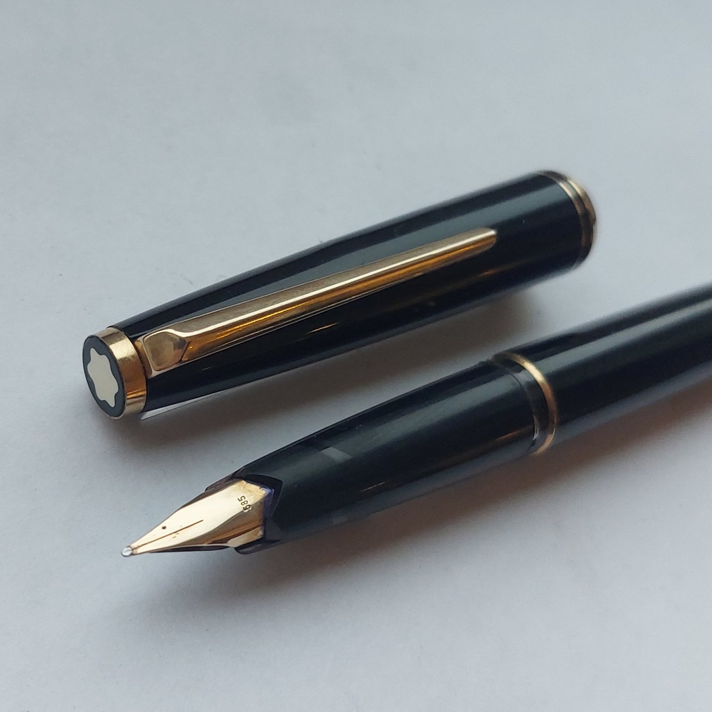 Sort Montblanc nr. 221 fyldepen fra 1970'erne. Piston blæk-påfylder..klar til at blive brugt. Ingen skader eller reparationer. Mål: 13,5 cm