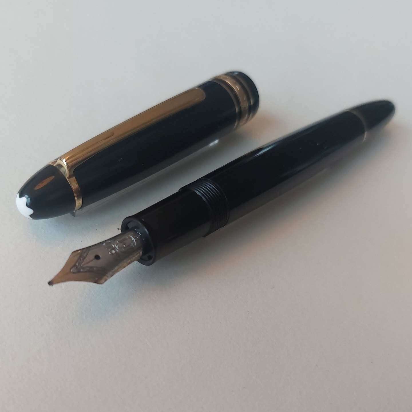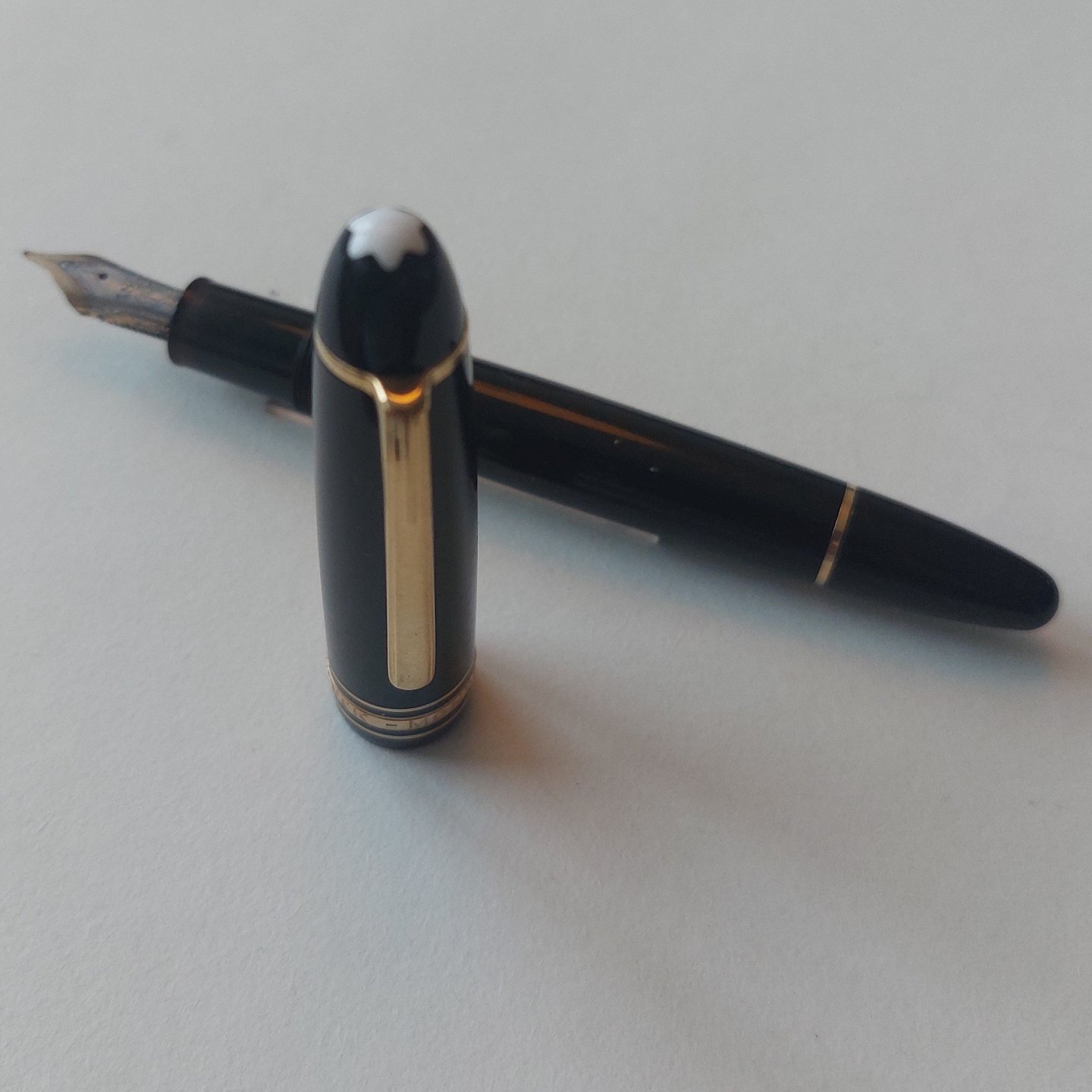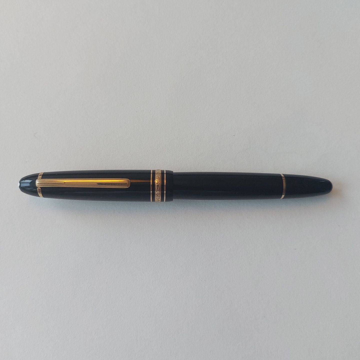Sort Montblanc Meisterstück Le Grand 146 fyldepen. I god stand uden skader eller reparationer. Klar til at blive brugt, når der bliver indsat ny refil med blæk i. Alle dele originale Montblanc dele fra produktionensperioden. L. 14,5 cm