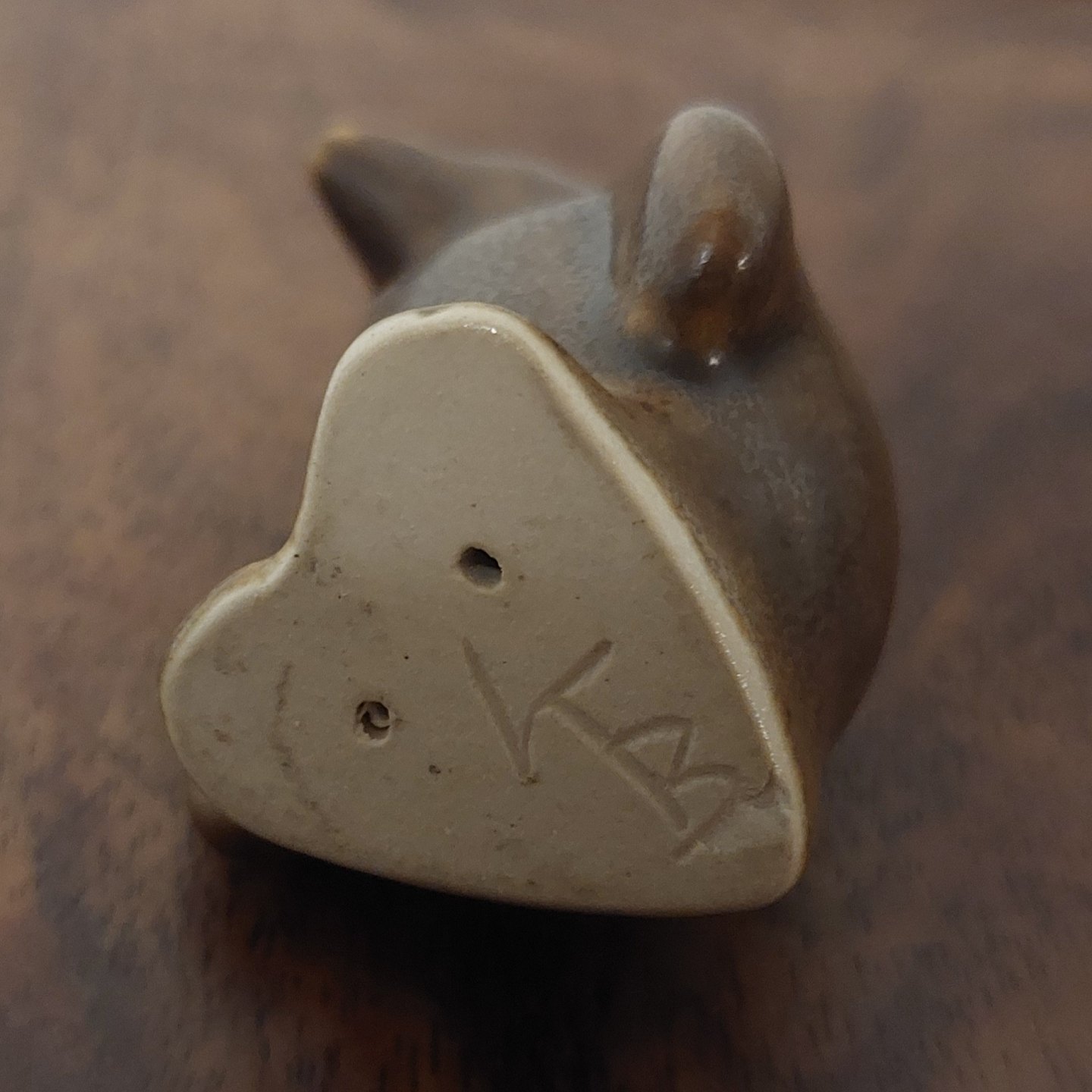 Knud Basse figur af pingvin unge I keramik. Dækket af en såkaldt brun harepels glasur. Fremstår I god stand. Signeret med KB på bunden