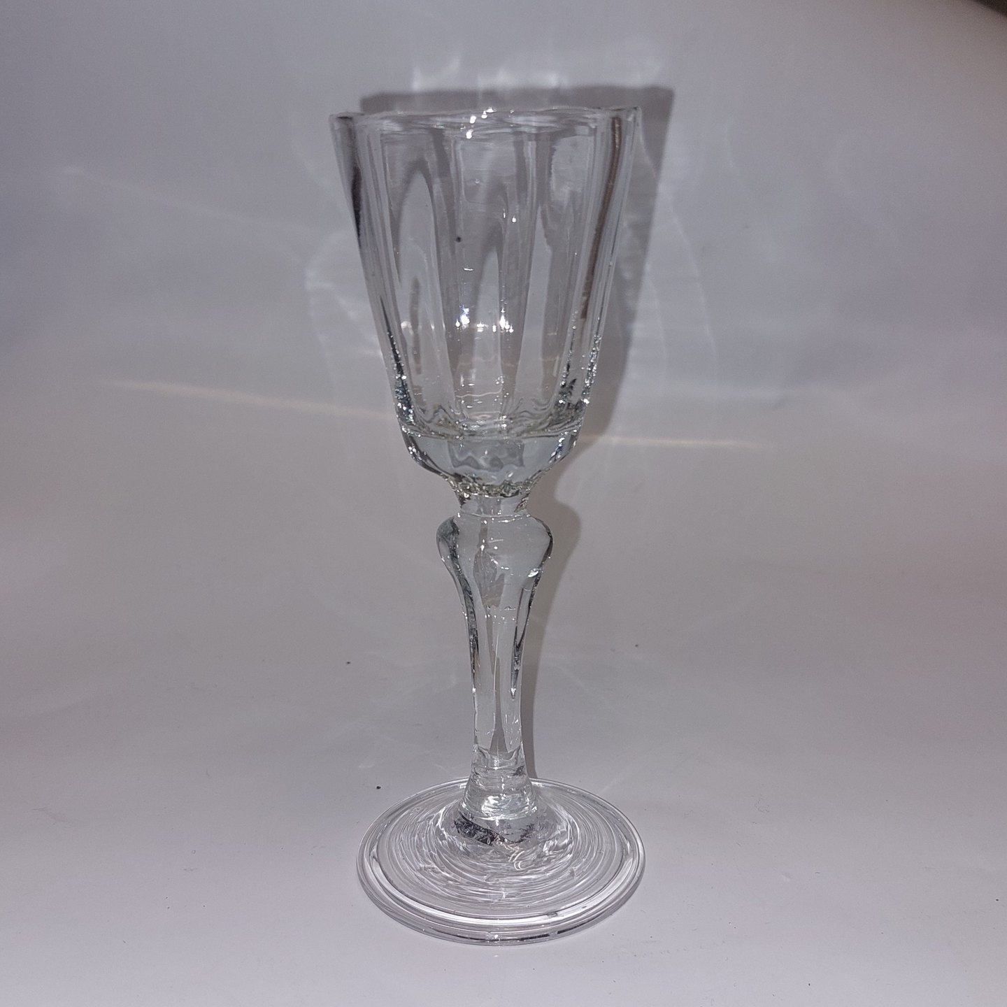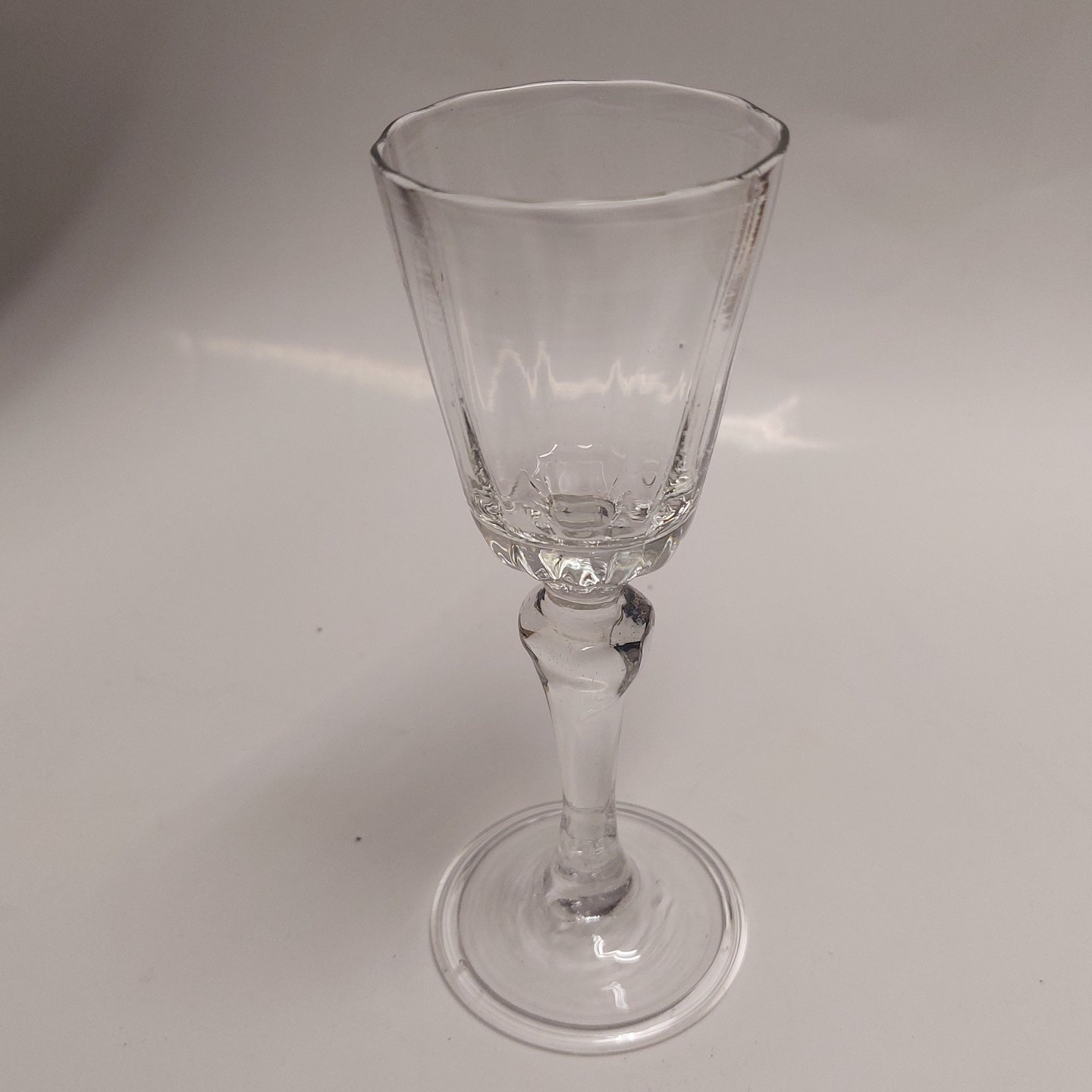 Vinglas 19. århundrede. Kummen optisk stribet. Kølleformet stilk og ombukket fod. Europædisk Glasværk fra omkring 1800. Fremstår I god stand uden skader eller reparationer. H. 15 cm