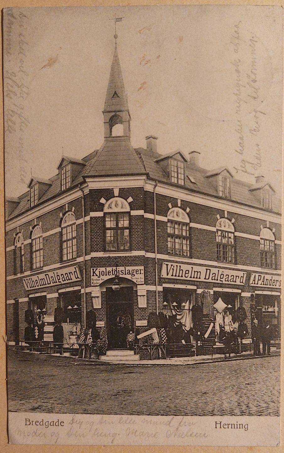 Postkort: Butiksfacade I Bredgade I Herning 1906