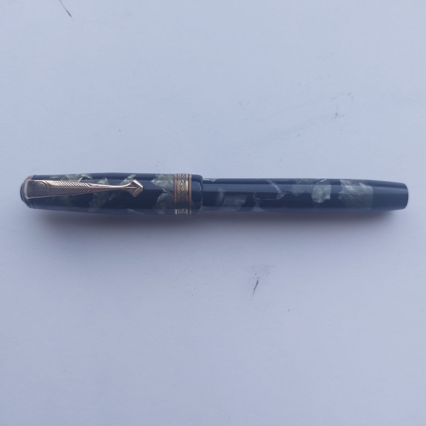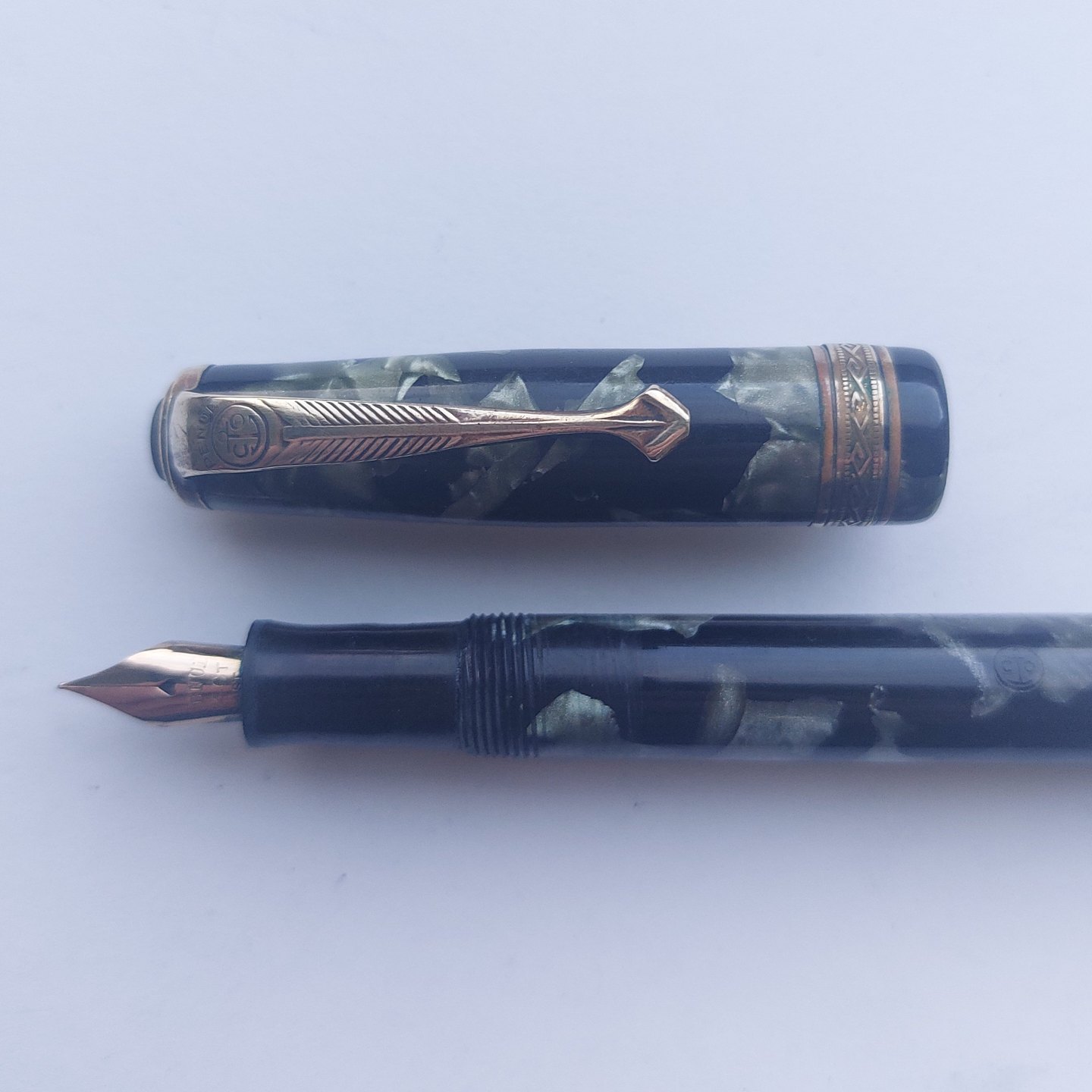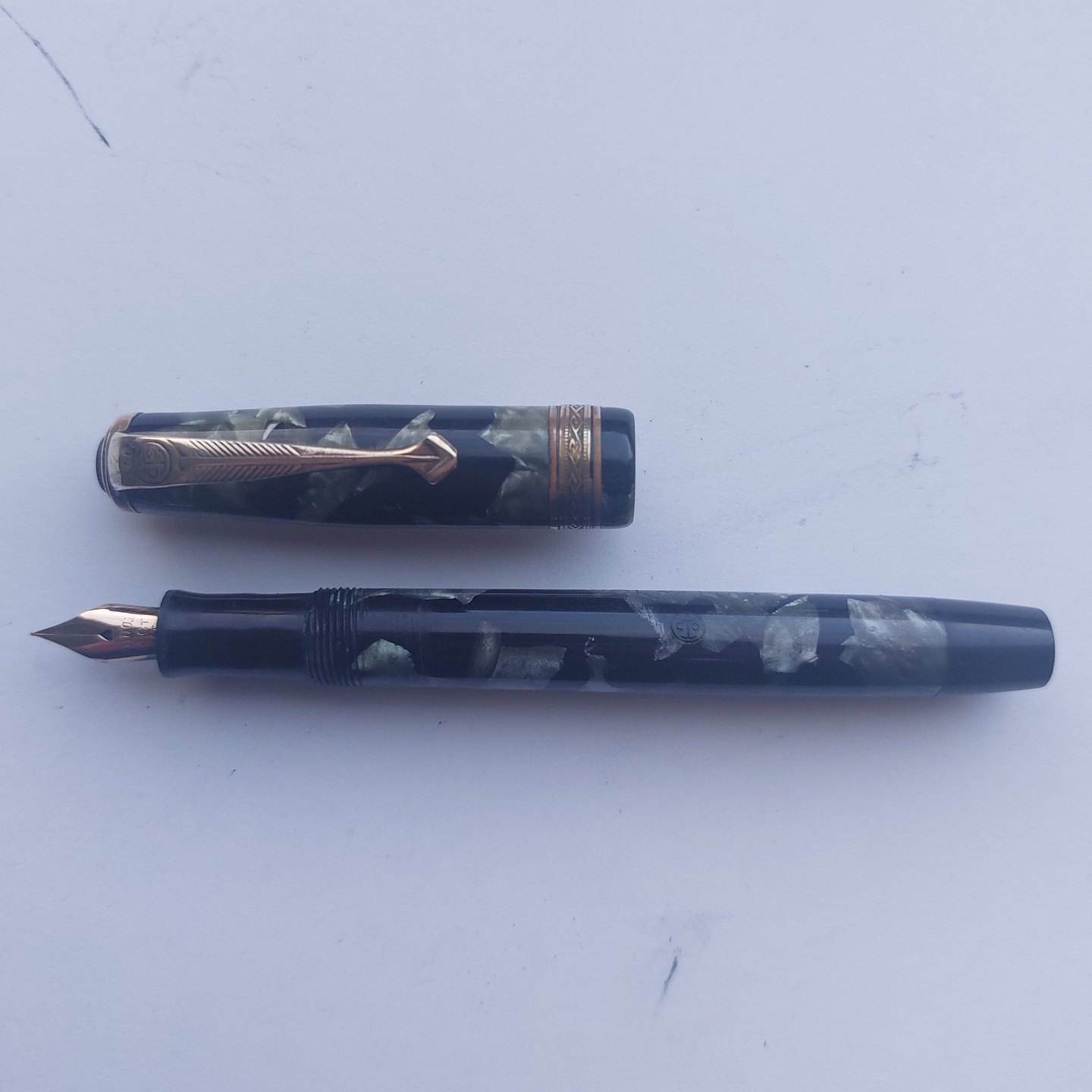 Grøn marmoreret Penol de Luxe fyldepen GAMLE FYLDEPENNE KØBES