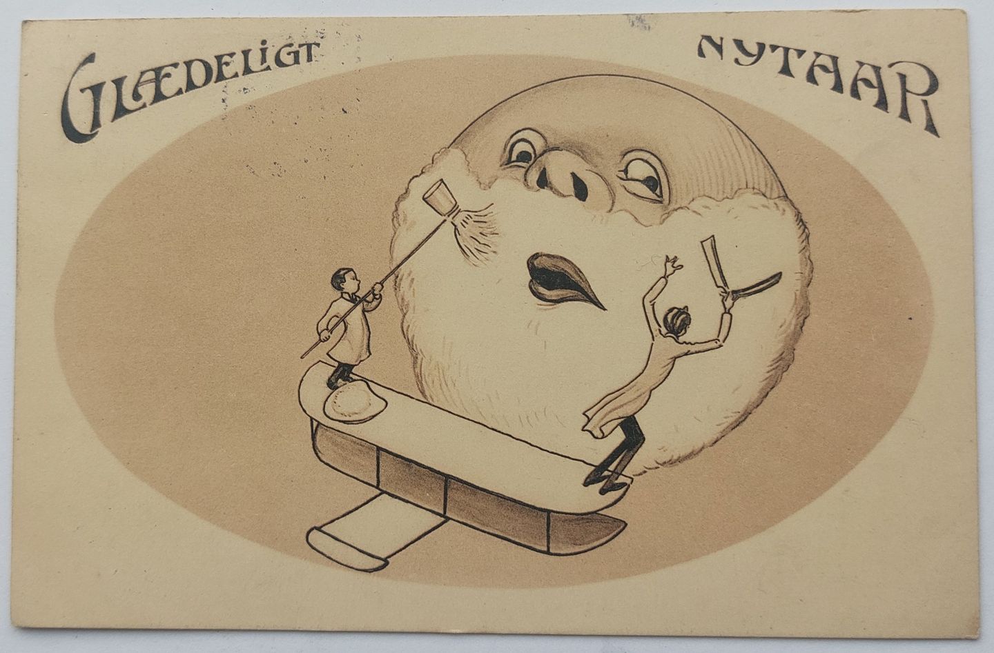 Glædeligt Nytaar postkort: En ordentlig barbering. Sendt I 1912. I god stand