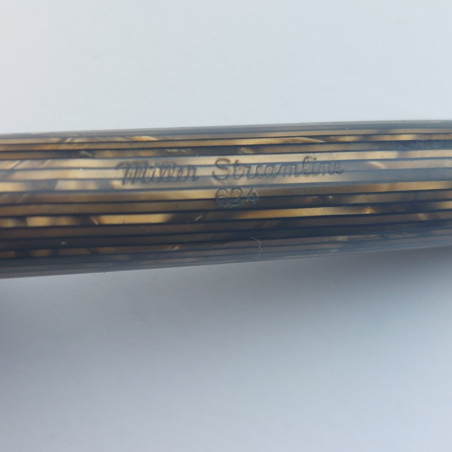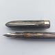 Grøn stribet Miller Streamline nr. 624 fyldepen. Fremstår i god stand. Klar til at blive brugt med gammel gummisæk. Alle dele originale Miller dele inclusiv en 14 karat guldspids.