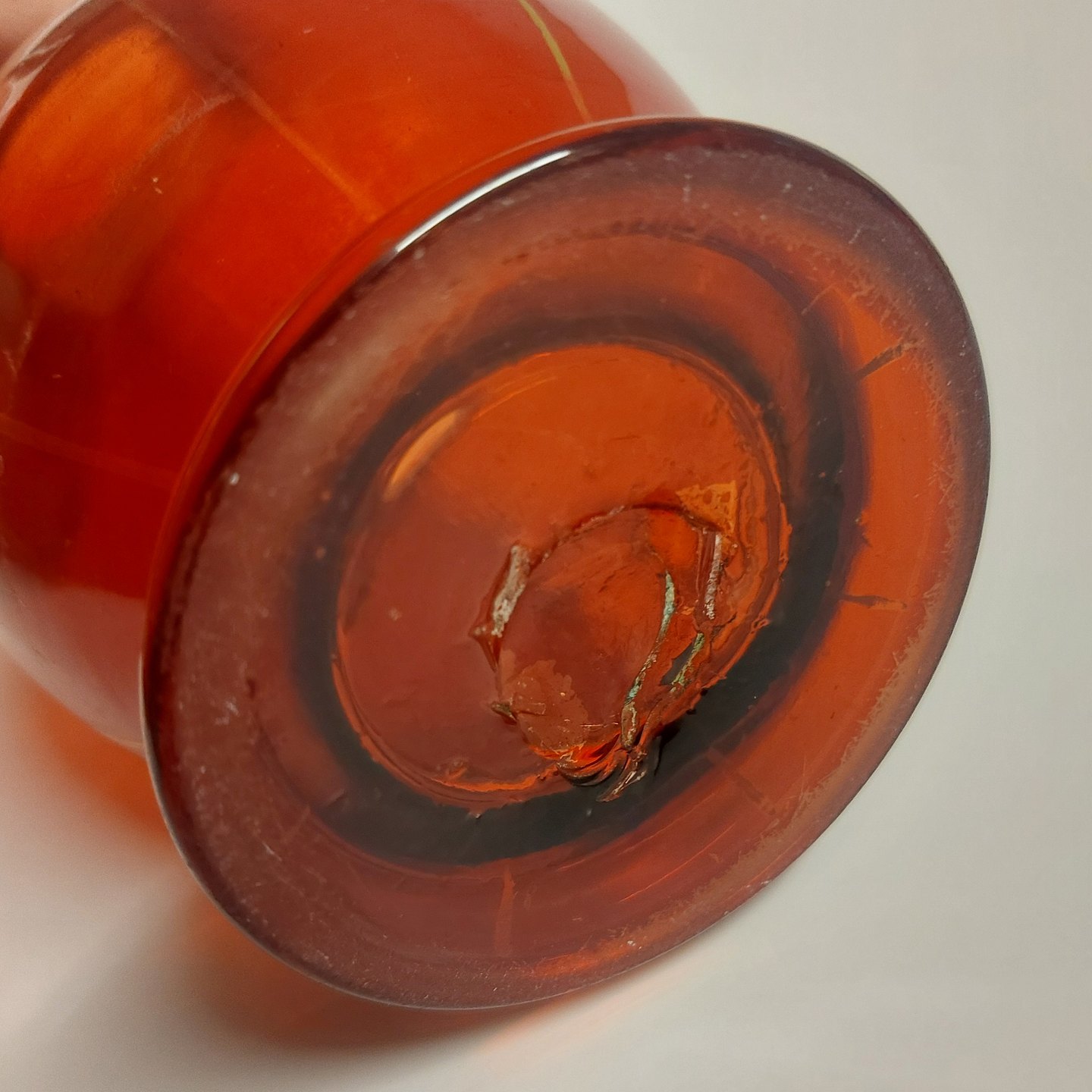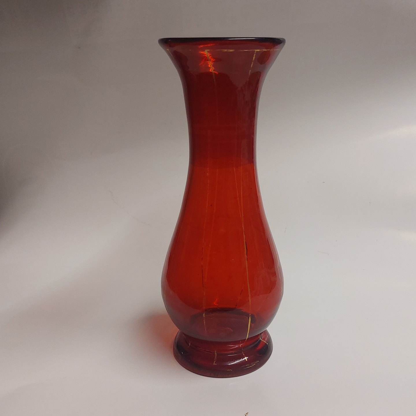 Rødt baluster formet hyacint glasvase fra slutningen af 19. århundrede. Rester af gulddekorationer. Lidt brugsspor, men ingen skader eller reparationer. H. 22 cm
