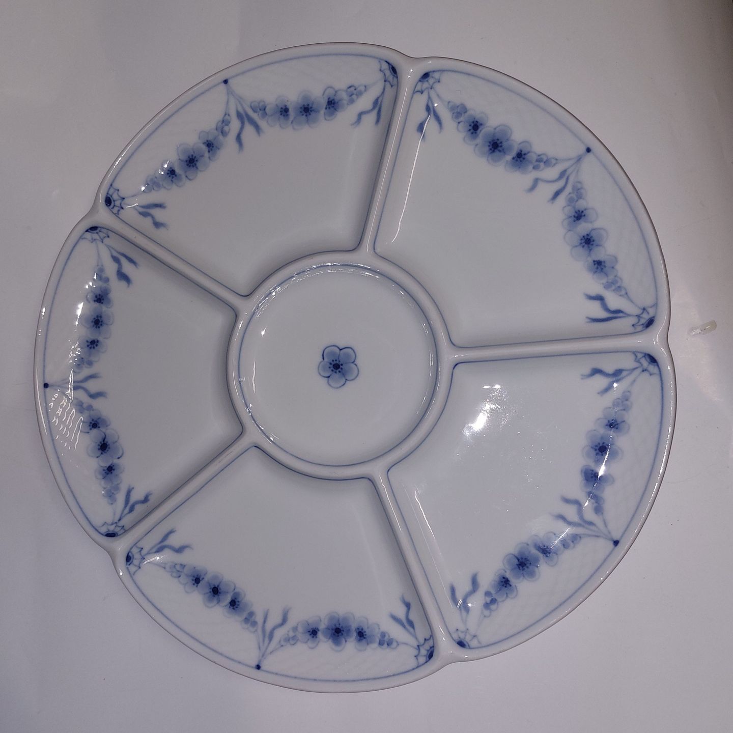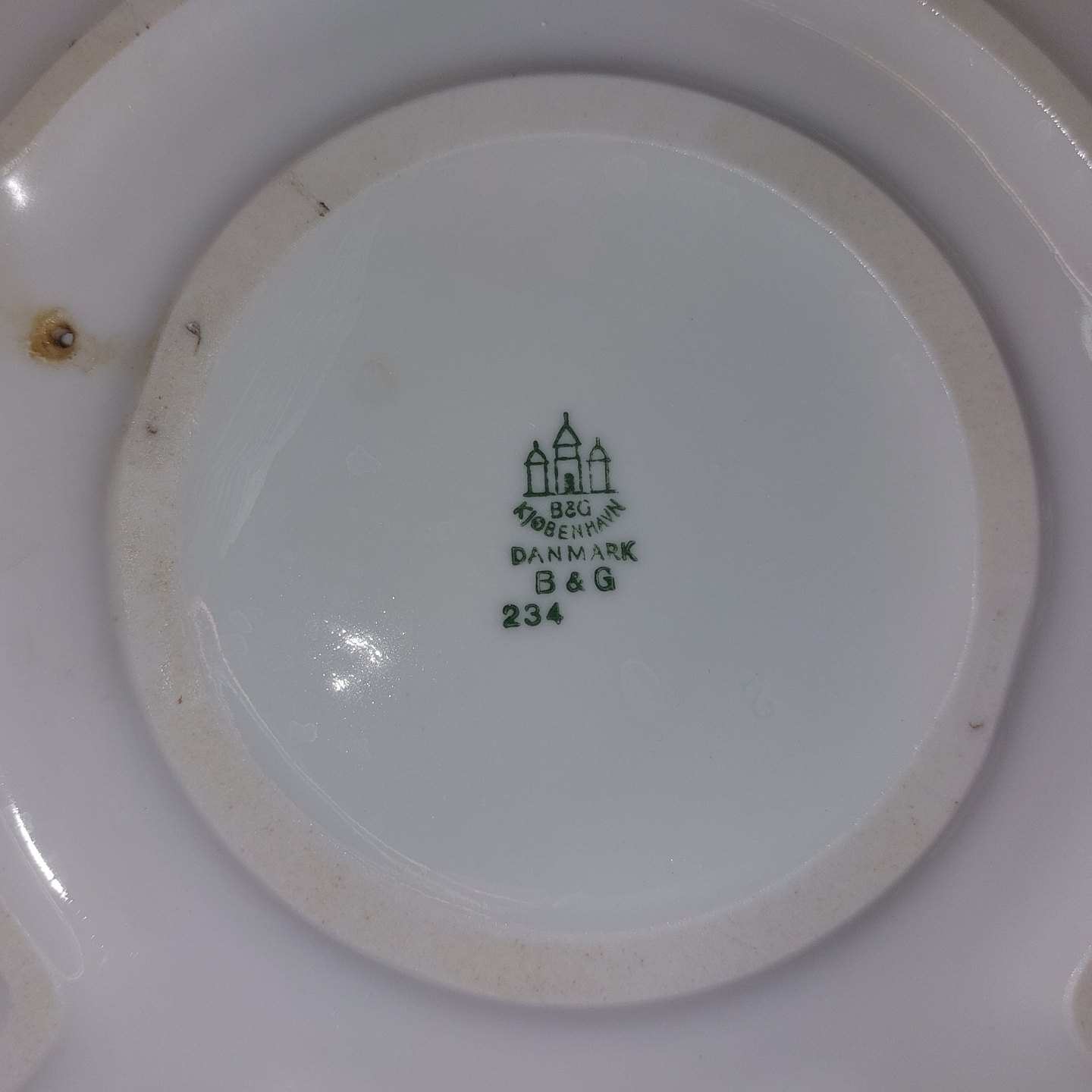 Empire cabaretfad i porcelæn fra Bing & Grøndahl. I god stand. Uden skader eller reparationer. Der er dog hul på bagsiden, der ikke er gennemgående. Hvorfor vides ikke. 1. Sortering. Fabriksmærket på bagsiden. Modelnummer 234. Mål:.H. 2,5.cm Ø. 32 cm