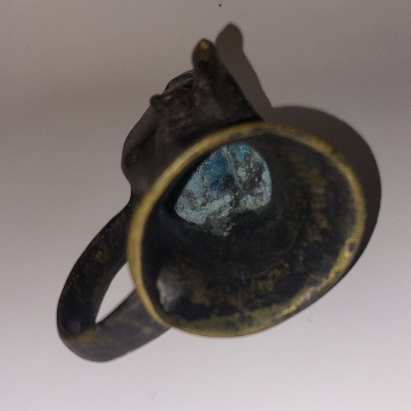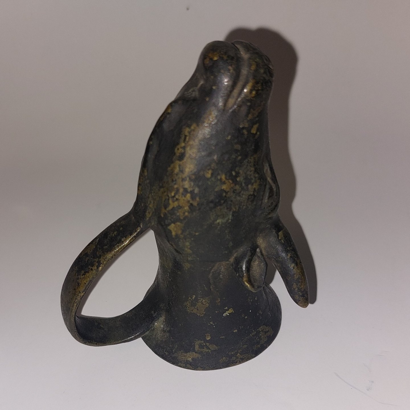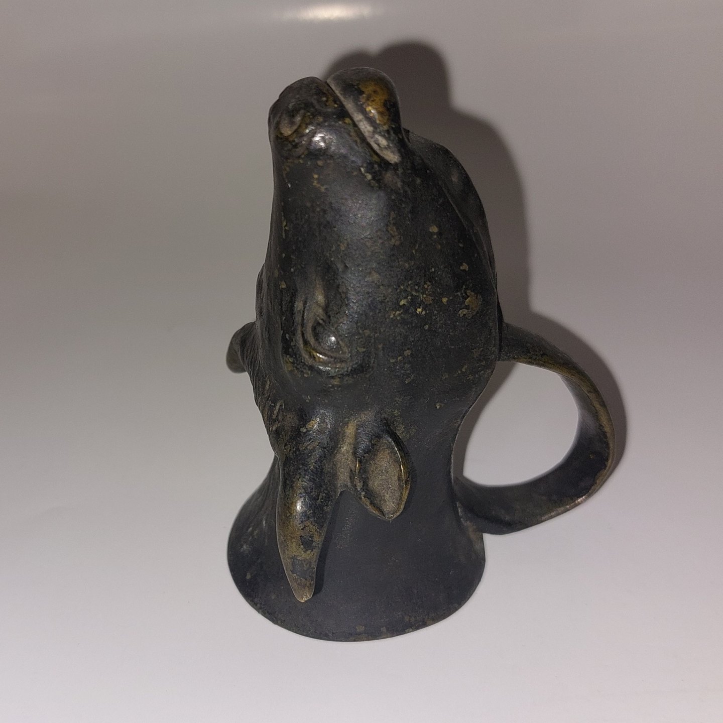 Tyrehoved med hank: Lille drikkekrus i bemalet metal. Fra gammel tid kaldet en “Rhyton”. Fremstår i god stand. Ca. 9,5 cm lang. Muligvis Grand Tour 19. århundrede ...