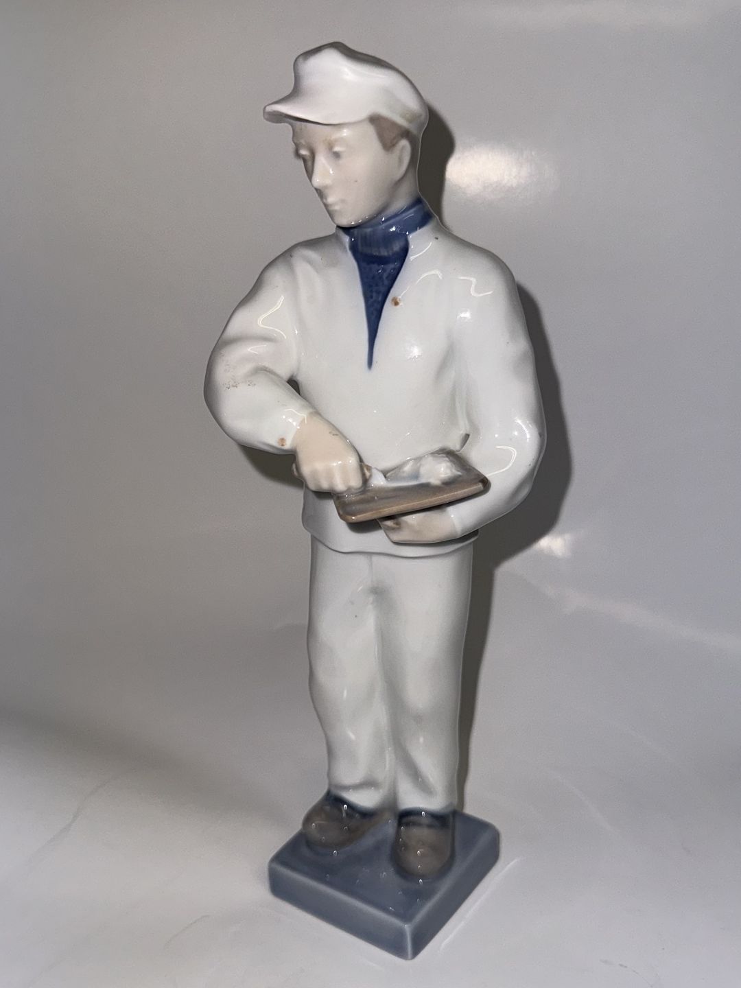 Figur i porcelæn af murer fra Royal Copenhagen. Fremstår i god stand. 1. Sortering. Fabriksmærket på bunden med fabrikslogo samt modelnummer 4377. Figuren er 25 cm høj