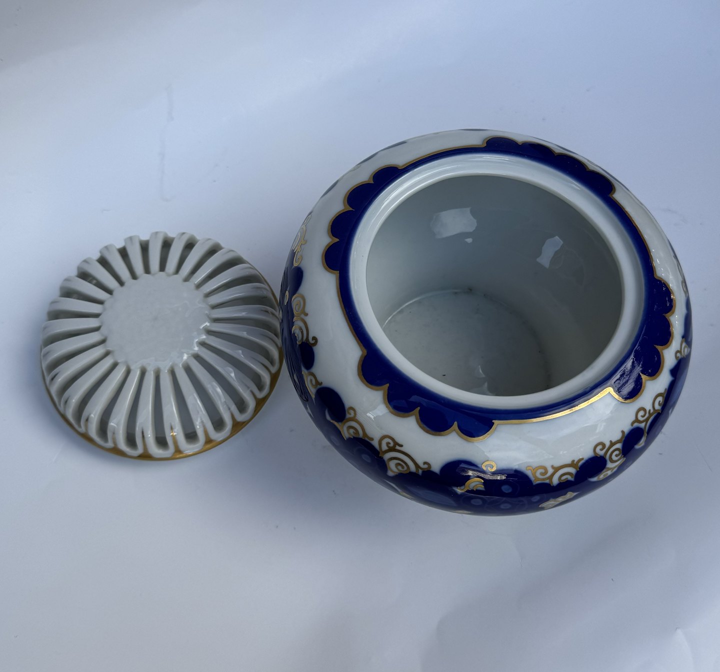 Art Deco Dufteskrin fra "Rosenthal" i porcelæn. Dekor Rosari, Entwurf , 1921 Julius v. Guldbrandsen, I perfekt stand. Fabriksmærket på bunden. H. 12 cm