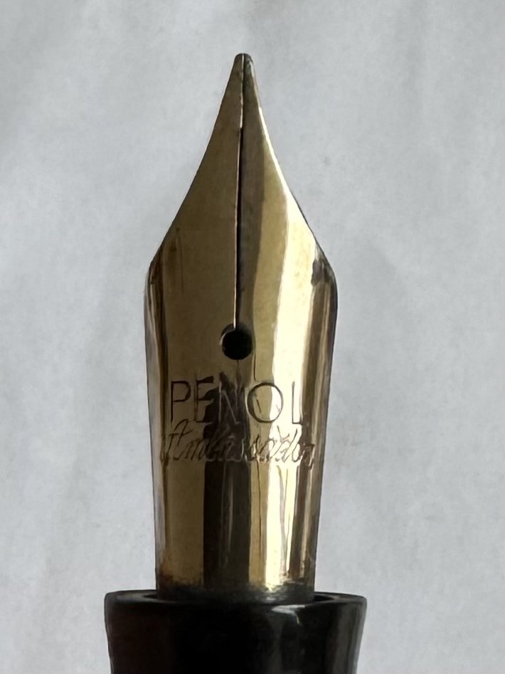 STOR CIGAR: Sort Penol Ambassador Senior fyldepen. Produceret i Danmark i 1940´erne. Fremstår i god stand uden skader eller reparationer. Alle dele originale fra Penol fabrikken. Piston filler påfyldningssystem. Fungerer ikke. Skal laves før der kan påfyldes blæk igen. Penol Ambassador nib. L. 13½ cm.