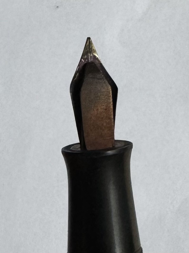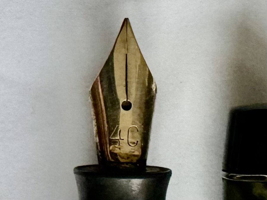 Fyldepennen fungerer ikke. Der skal indsættes ny gummisæk før end den igen kan få påfyldt blæk og skrive igen. Denne omsækning kan tilkøbes for d.kr. 225,-