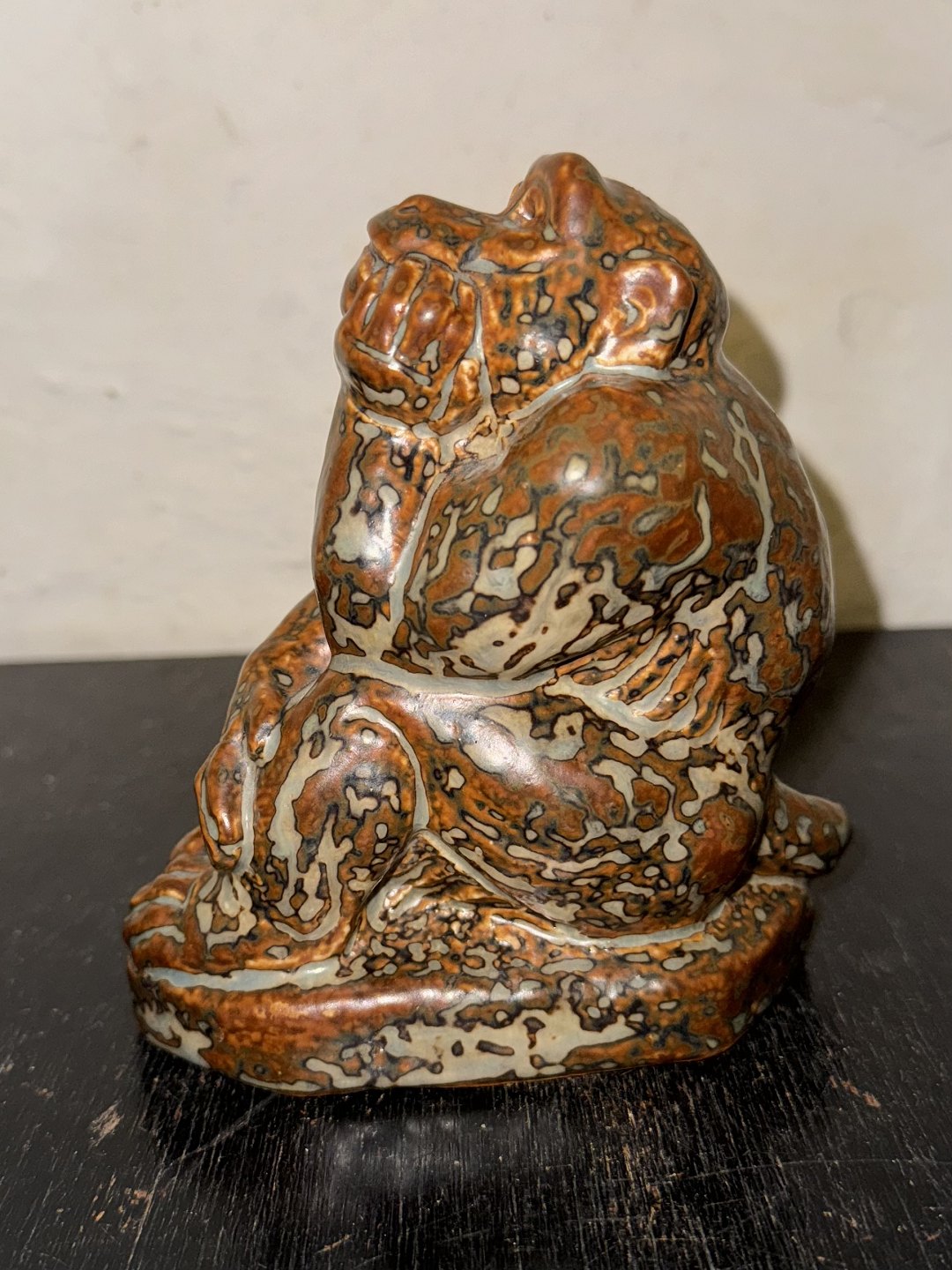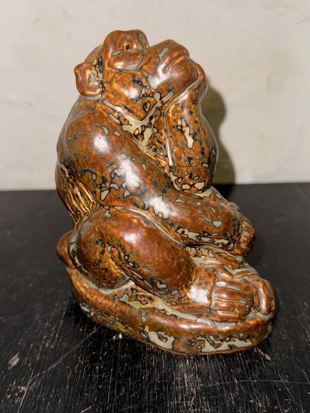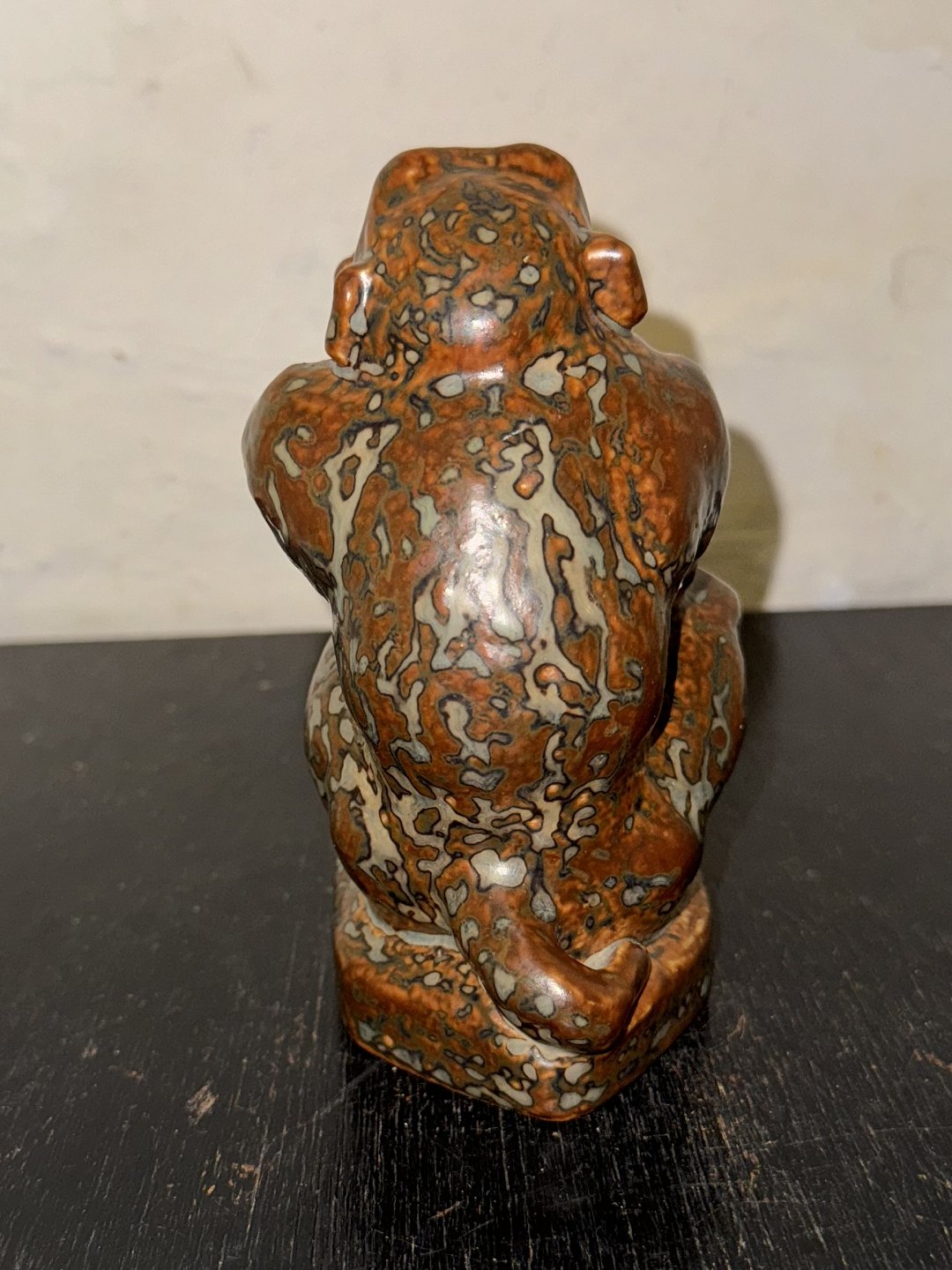 Royal Copenhagen figur i stentøj af siddende abe af Knud Kyhn. I god stand. Fabriksmærket på bunden sammen med produktionsår 1950 samt kunstnersignatur KK. 1. sortering. H. 14,5 cm