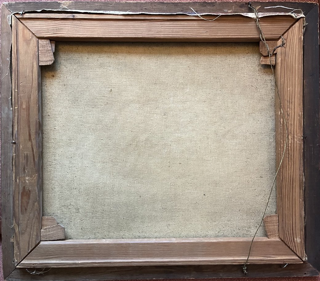 Oliemaleri på lærred af Edvard Saltoft (1883-1939). Portræt af blond dreng i rød trøje. Formodes malet omkring 1920. Ramme og lærred i god stand. Mål: