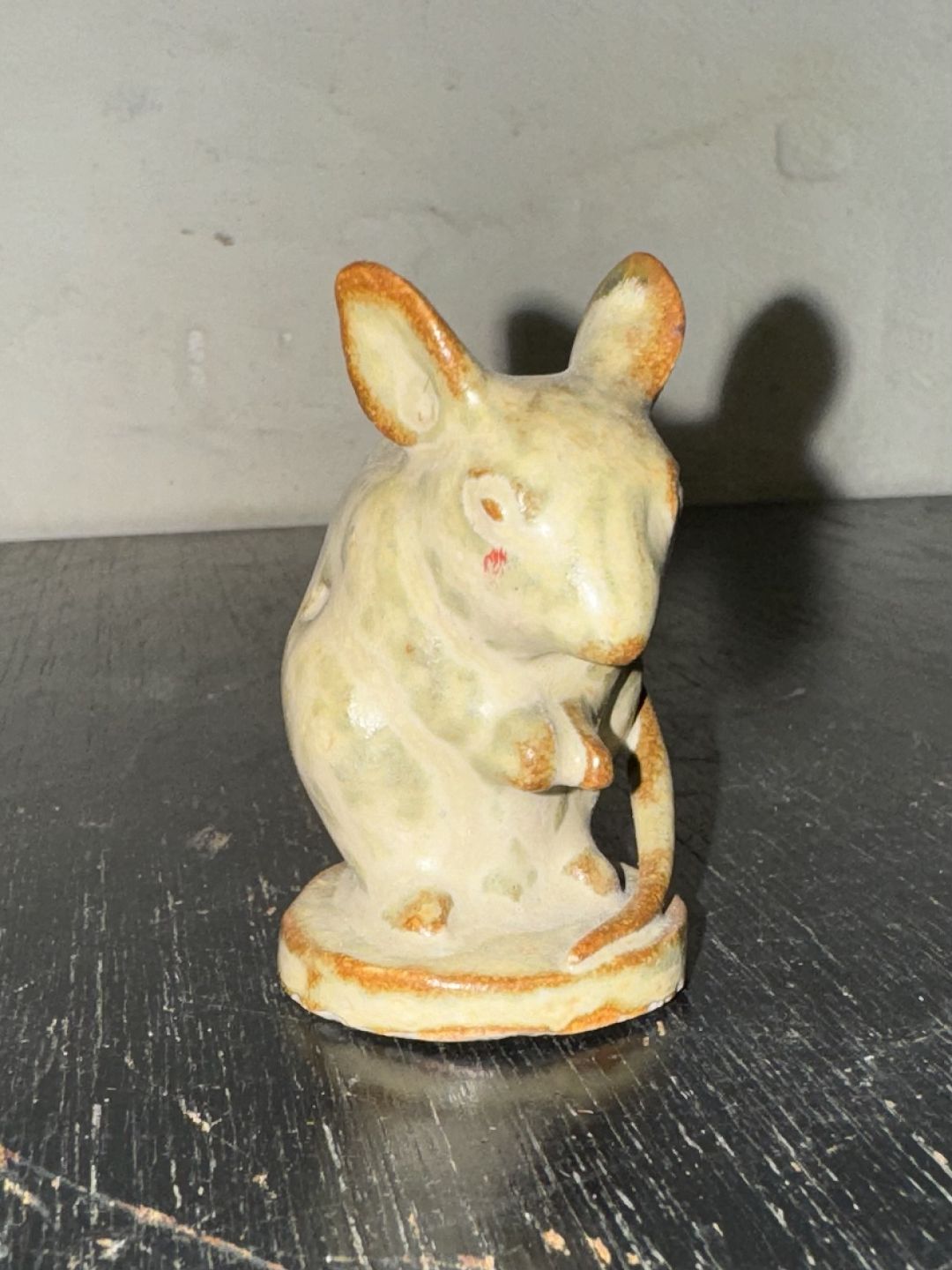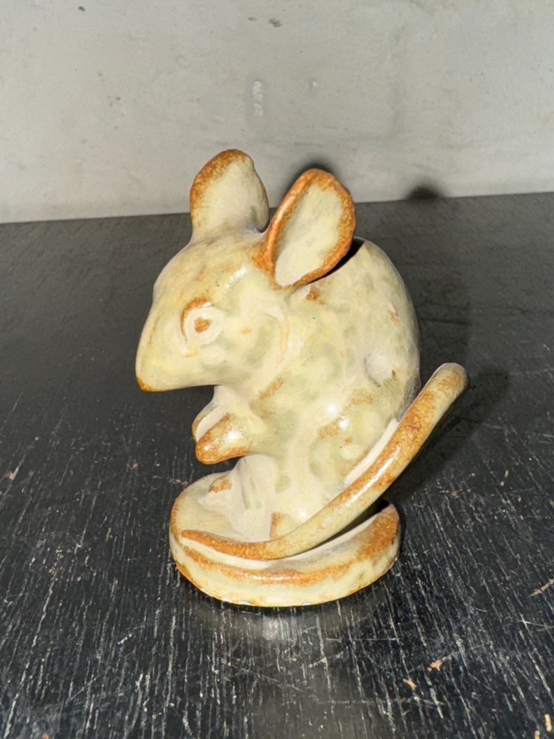 Grønt glaseret figur af mus i keramik fremstillet på Holmegaard Glasværk af Arne Bang. Fremstår i god stand. Signeret HG for Holmegaard Glasværk. H. 6 cm