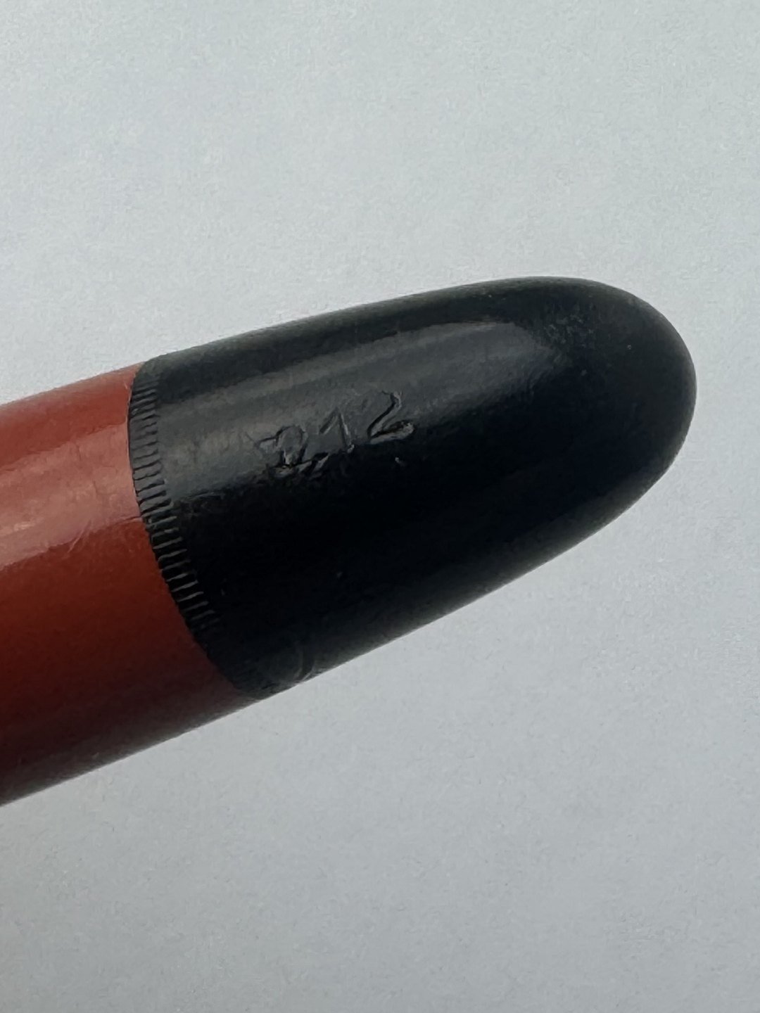 Koralrød Montblanc no. 212 fyldepen. Fremstår i god stand uden skader eller reparationer. Hætten mærket med MONTBLANC den lille sorte bundskrue med modelnummeret 212. Der skal indsættes en ny gummisæk, før end den igen kan optage blæk og skrive påny.
