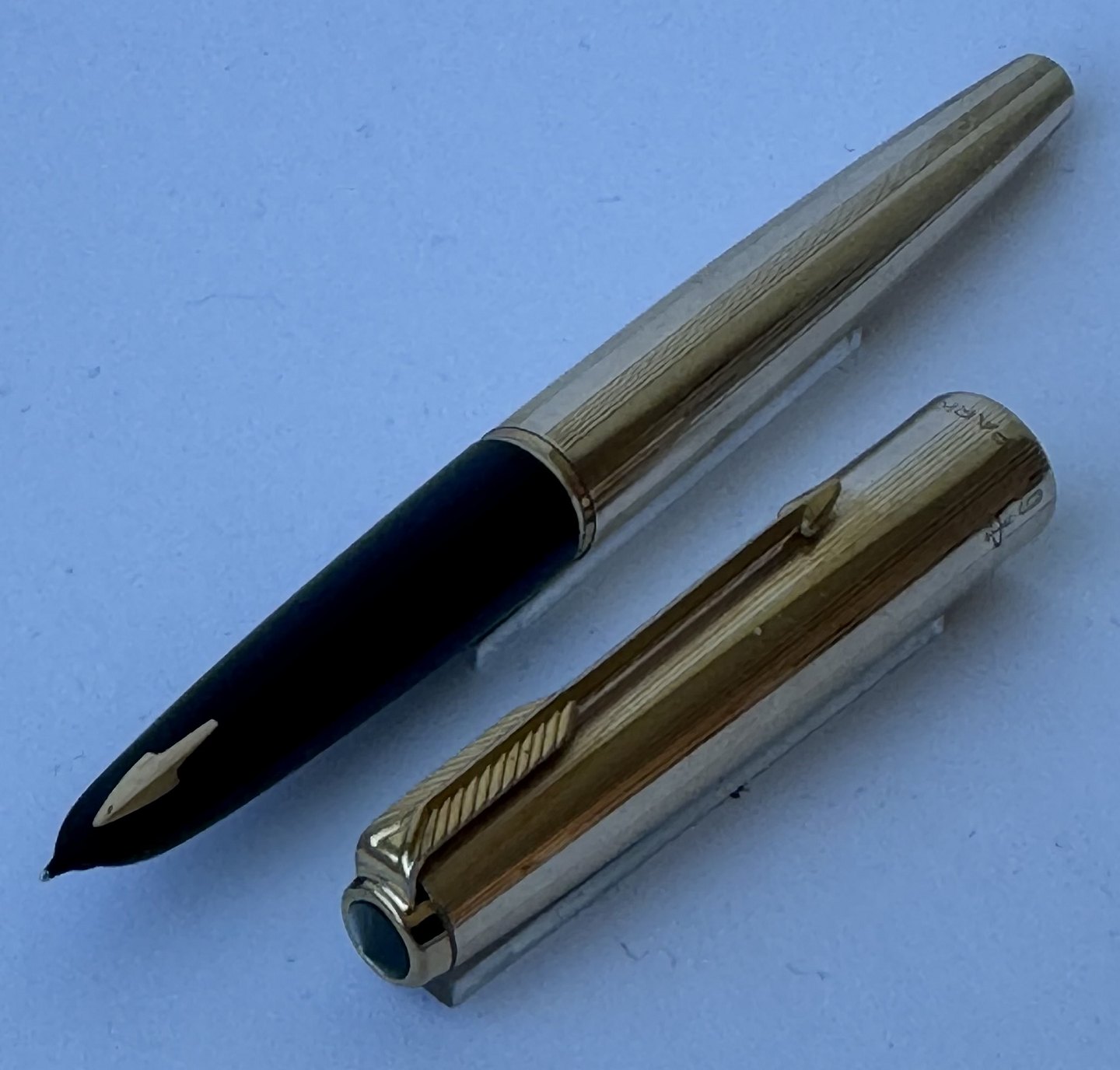 Gold-double Parker 61 fountain pen. Ready to be used. Appears in good and functional condition. Used very little. No special signs of wear. L. 13.3 cm