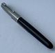 Black Parker 51 fountain pen with steel cap from the 1950s. Appears in good and functional condition. No faults or missing parts to describe. On the side you can see “the danish anchor” (small imprint logo), which is the fountain pen manufacturer and retailer Christian Olsen's company logo (an Anchor and initials C. O.). Fountain pens that were imported to Chr. Olsen's factories were stamped with this logo as well as the company's own products, for example Penol.