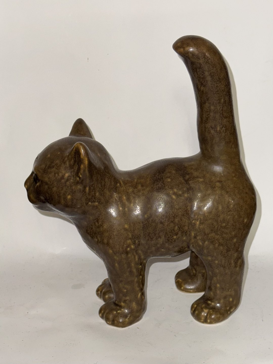 Ceramic figurine made by Knud Basse (1916-1991) in his workshop in Vang on Bornholm. Brown glazed. Appears in good condition. Signed with KB. Dimensions: H. 22 cm L. 17 cm W. 7.5 cm