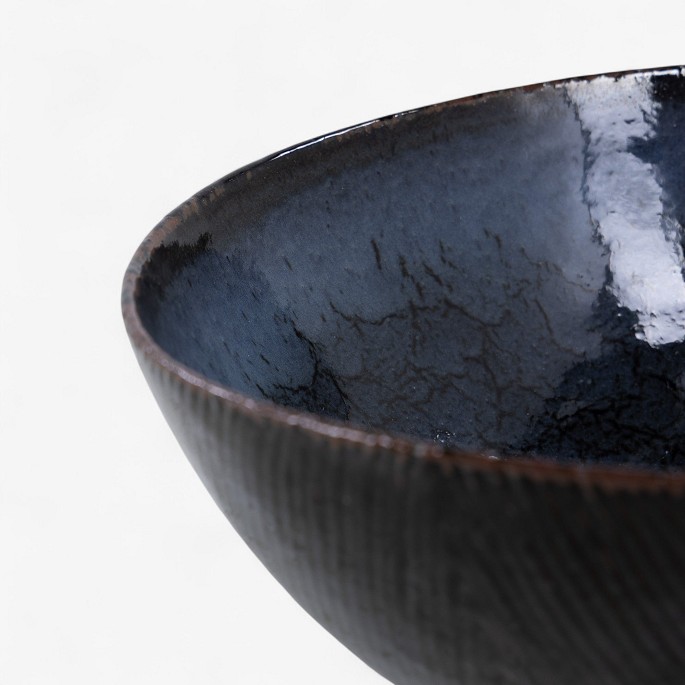 Skål i stentøj med riflet sommerfuglevinge glasur. Signeret.