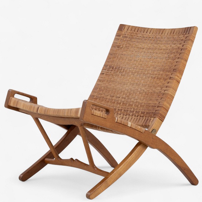JH 512 - 'Kamin'-foldestol i patineret egetræ med sæde og ryg i delvist originalt flet. Original krog til vægophæng medfølger. Formgivet i 1949.
