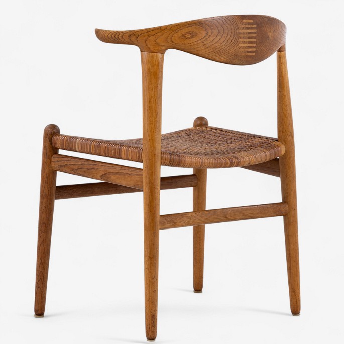 JH 505 - 'Kohornstol' i patineret egetræ med sæde i originalt flet. Formgivet i 1952.