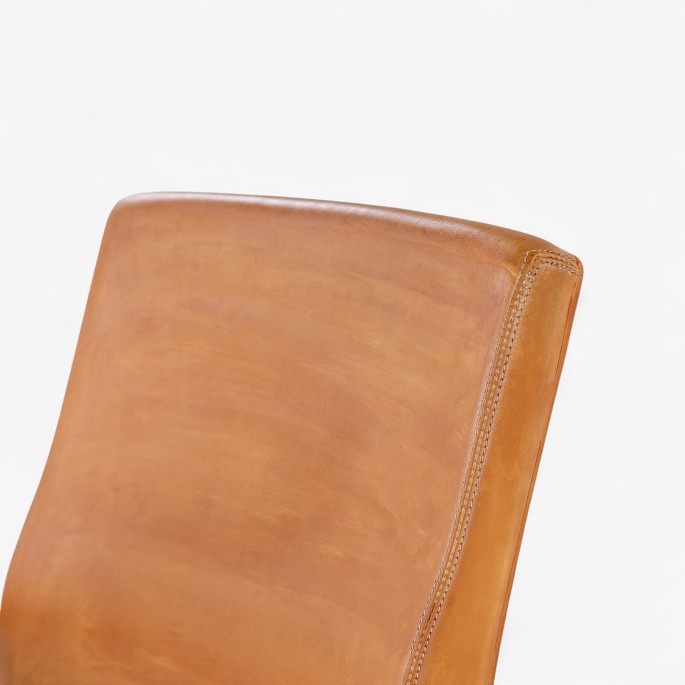 Lavrygget 'Oxford'-kontorstol i patineret naturlæder på stel af stål.