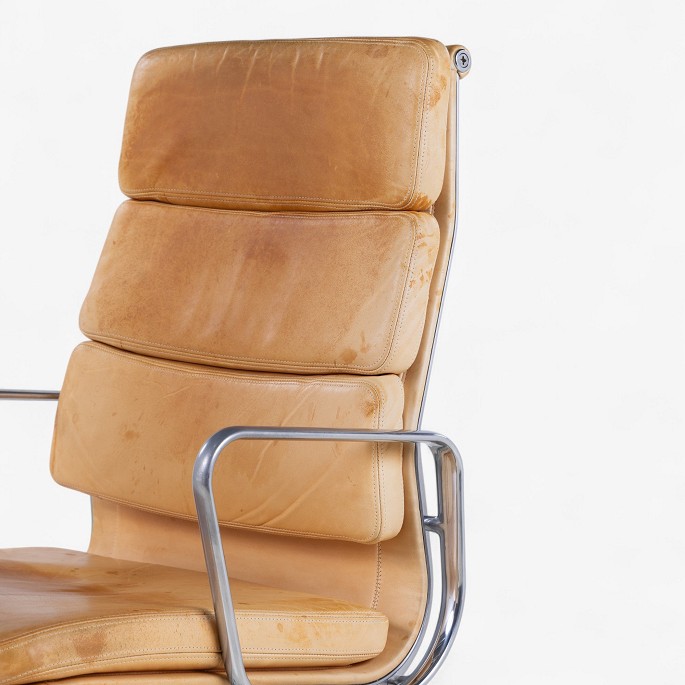EA 219 - Højrygget kontorstol i patineret naturlæder på stel af stål. Mærket fra producent.