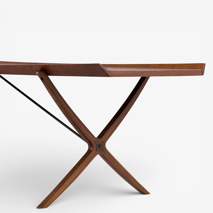 Sjældent 'X'-sofabord med top i patineret teak m. kehlet kant på krydsstel. Stemplet fra producent.