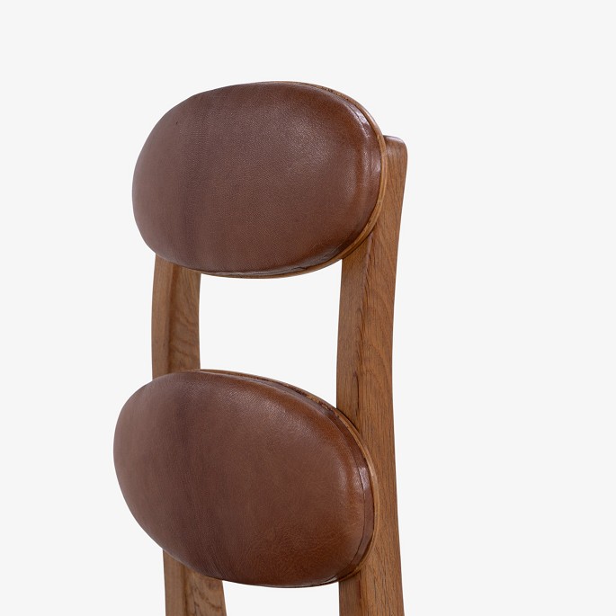 'Musikerstol' med stel i patineret egetræ og justerbart sæde og ryg i patineret nigerskind. Formgivet i 1942.