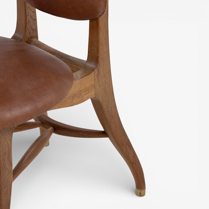 'Musikerstol' med stel i patineret egetræ og justerbart sæde og ryg i patineret nigerskind. Formgivet i 1942.