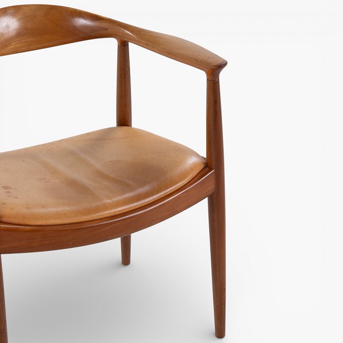 JH 503 - 'The Chair' armchair in mahogany with seat in patinated natural leather. Manufacturer's mark.