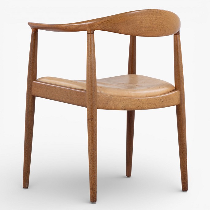 JH 503 - 'The Chair' armchair in mahogany with seat in patinated natural leather. Manufacturer's mark.