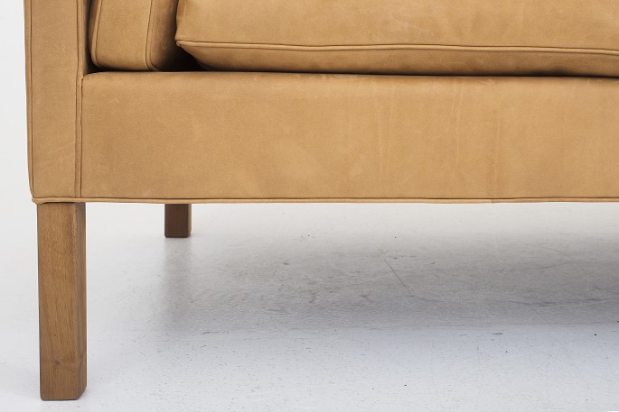 BM 2213 - Reupholstered 3 seater sofa in the Dunes Camel leather with legs in teak.