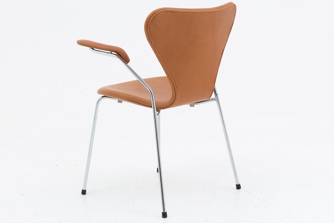 AJ 3207 - Armchair, reupholstered in KLASSIK Cognac leather and legs in steel.