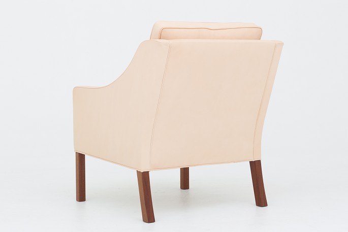 BM 2207 - Reupholstered armchair in natural leather and mahogany legs. We can offer upholstery of the chair in fabric or leather of your choice.