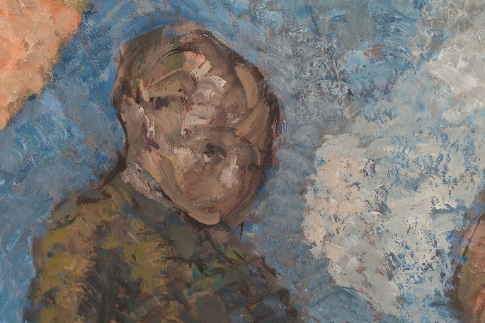 Signeret maleri af figurgruppe fra 1968 uden ramme