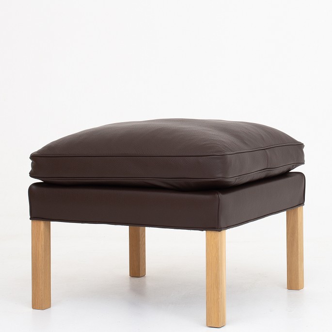 BM 2202 - Reupholstered foot stool in brown Prestige Coffee leather with legs of oak.