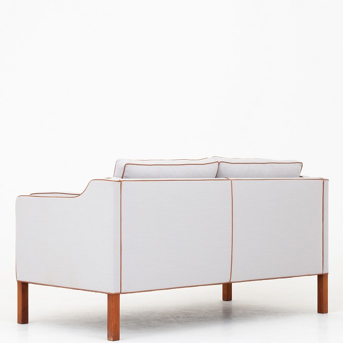 BM 2212 - Nybetrukket 2 pers. sofa i tekstil - Steelcut Trio (farve 105) med keder i Elegance Walnut-læder og ben i teak.
