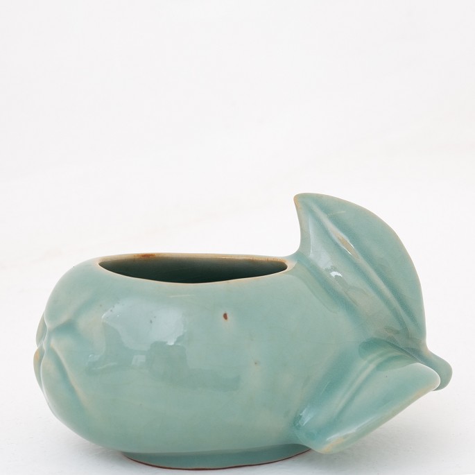 Vase i form af fisk i stentøj. Signeret.