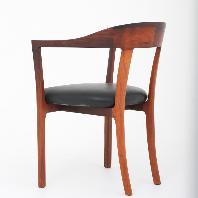 Sjælden karmstol i palisander og sort læder. Model J2833. Designet i 1958.