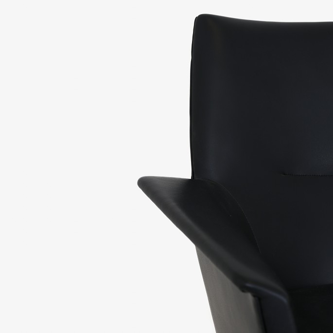 'Wing' sofa in black leather with oak frame.