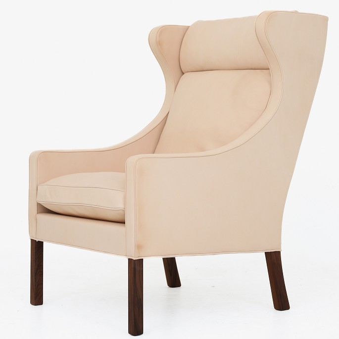 BM 2204 - Reupholstered Wingback Chair in natural aniline leather. KLASSIK offers the chair in textile or leather of your choice. Please contact us for more information.