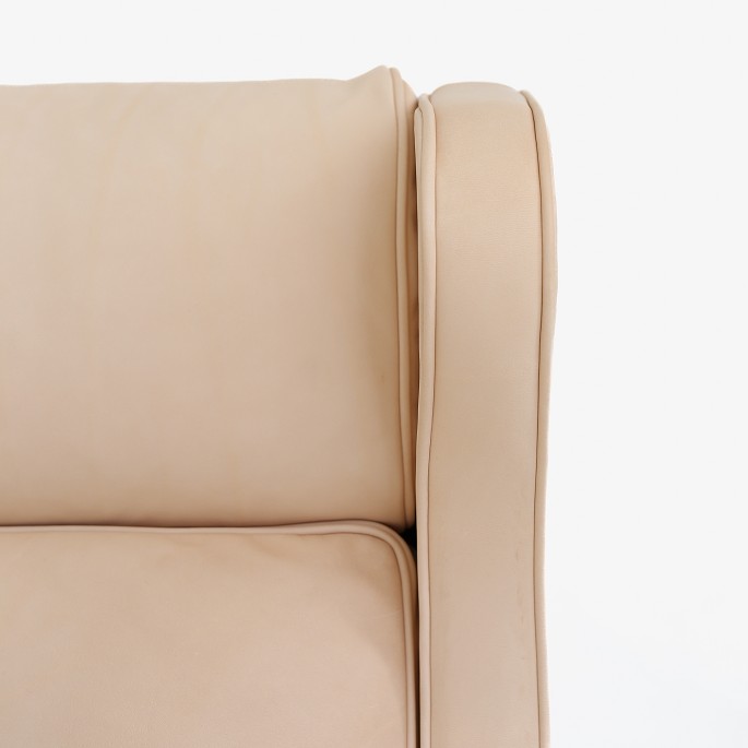BM 2204 - Nybetrukket Øreklapstol i naturlæder. KLASSIK tilbyder Øreklapstolen i tekstil eller læder efter eget valg. Kontakt os venligst for mere information.